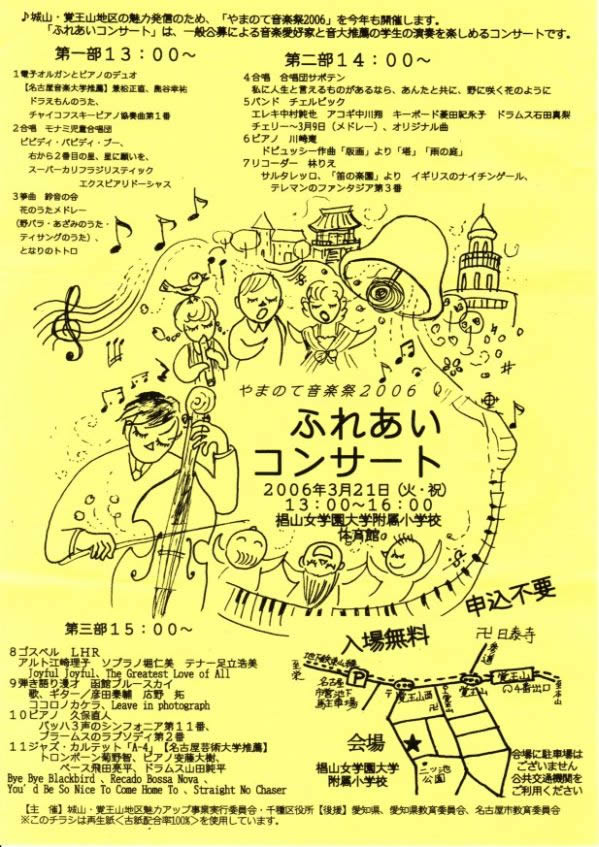 - やまのて音楽祭は小学生の小さな子達から大人まで様々な方達が、それぞれの音楽を奏でていました。地域の方の支援、ボランティアで運営していく事は素晴らしい事だと思います。そんな音楽祭で演奏する事ができ、よい経験ができました。